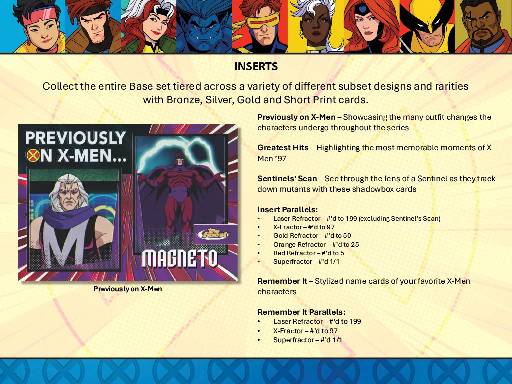 design. Your favorite X-Men characters will be featured on the classic card